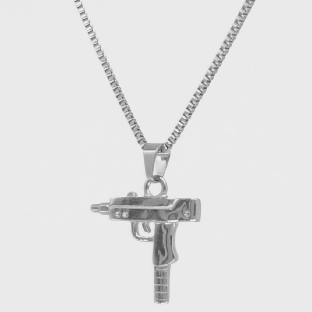 Style yourself with a timeless classic! Our Uzi Pendant is perfect for everyday wear. All fashion savvy shoppers know that trends come and go, but nothing beats the enduring elegance of a classic. This unique piece is crafted with an exquisite stainless steel uzi design and it's just the right size, measuring in at 7mm thick. And you won't have to worry about oxidation or tarnishing - no matter what the climate - thanks to its stainless metal construction. Now you can recreate iconic looks from musical legends or develop your own look with our range of silver jewelry options. Indulge in a classic piece for all occasions and express yourself every time you step out in style!